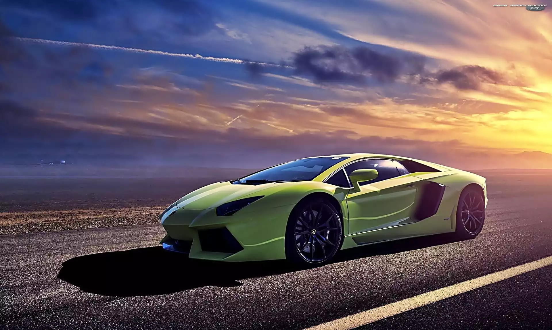 Samochód: Aventador, Zachód Słońca, Lamborghini, Droga