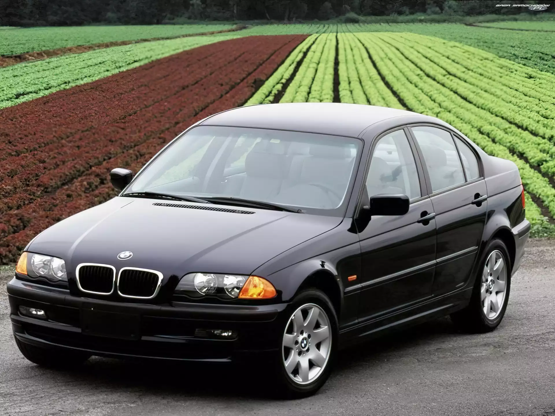 Samochód: Czarne, BMW, Pole, Sedan