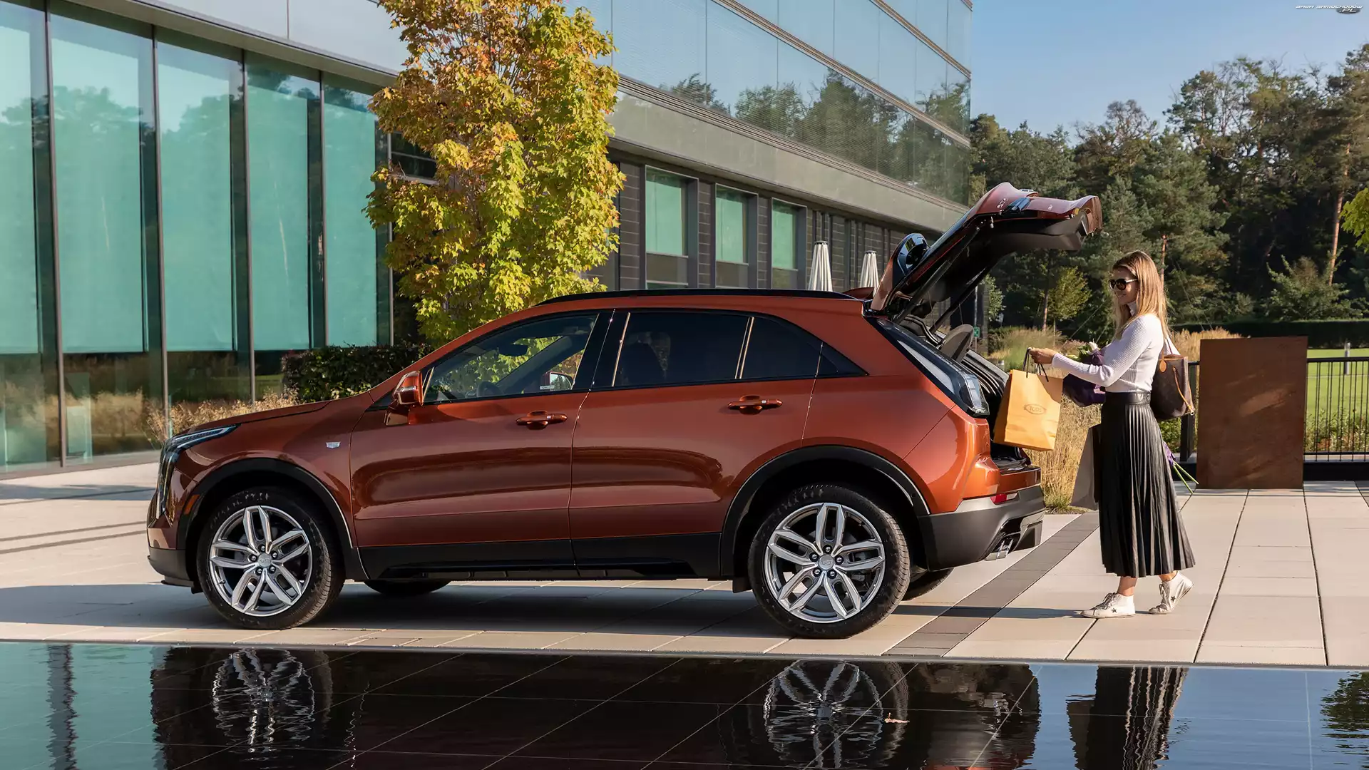 Kobieta, Cadillac XT4 350D, Bok- Zdjęcia samochodów