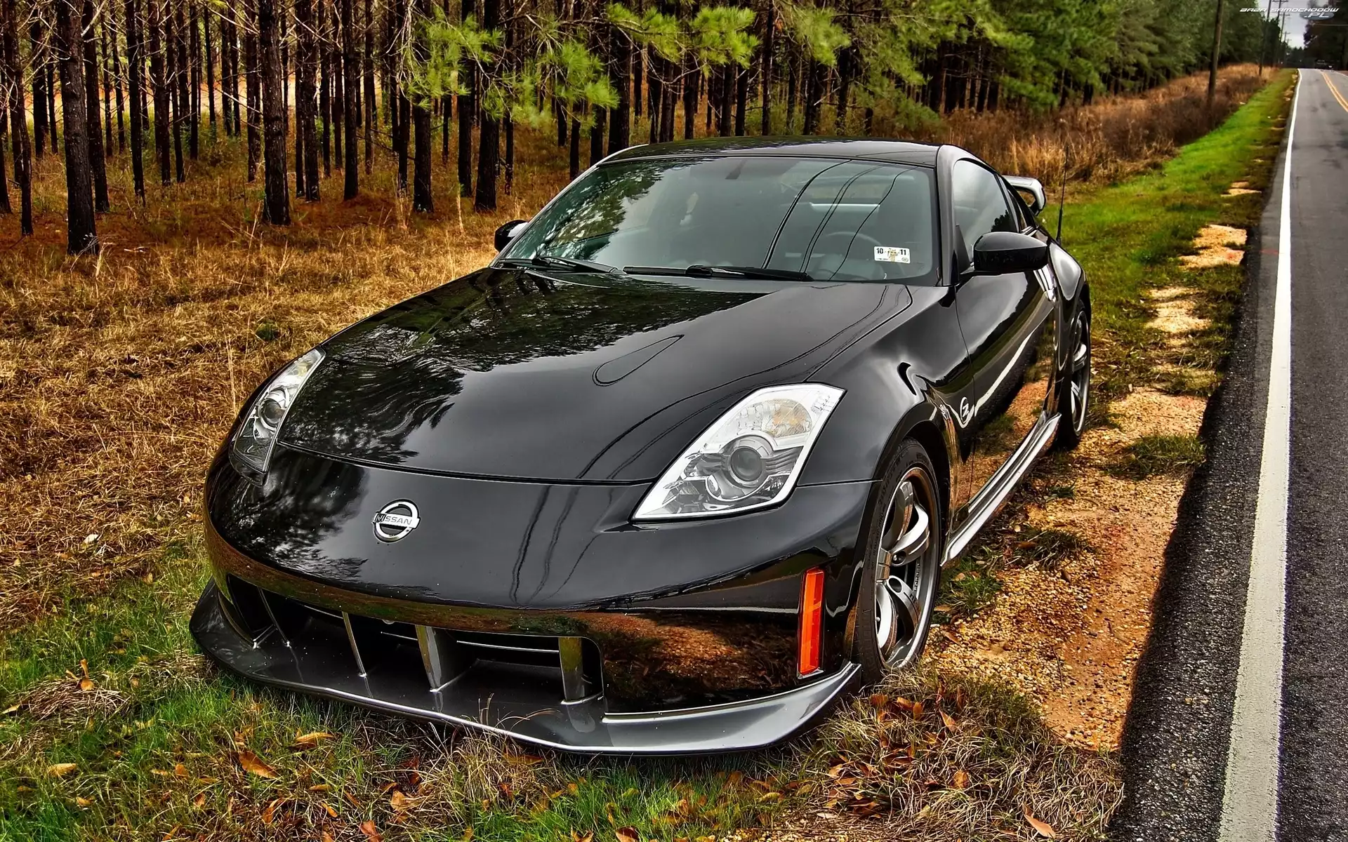 Pobocze, Nissan350Z, Las- Zdjęcia samochodów